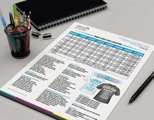 Create a clear screen print price sheet with our proven tool. Covers fees, white base costs, terms. Get your editable copy!
